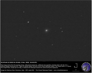 Постперигелионное изображение 3I/ATLAS, опубликовано 5 ноября 2025 года проектом Virtual Telescope. (Фото: Проект Виртуального Телескопа)