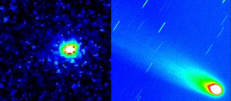 Сравнительное фото обеих комет: слева объект 3I/ATLAS, справа комета Леммона.