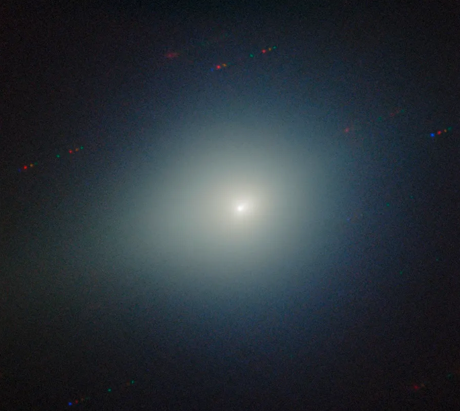 Снимок цветной, потому что его собрали из четырёх фильтров: синего, зелёного, оранжевого и красного. Это не фильтры на камере смартфона, а серьёзная спектральная диагностика — чтобы понять, из чего состоит газовое облако вокруг ядра.