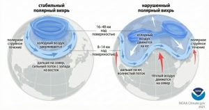 Ситуация кардинально меняется, когда индекс уходит в минус. Давление над Арктикой повышается, а в средних широтах падает, и разница между ними стирается. Струйное течение ослабевает, теряет свою упругость и начинает извиваться, как змея. Ветры больше не могут удерживать холод внутри полярного круга. Барьер рушится, и арктический воздух, словно вода из прорванной плотины, устремляется на юг. Именно отрицательная фаза ответственна за знаменитые погодные аномалии, такие как «Зверь с Востока» в Европе или внезапные заморозки в Техасе. Пока ледяной воздух проваливается вглубь континентов, в саму Арктику, наоборот, засасывается тепло с юга, что приводит к парадоксальным оттепелям на Северном полюсе. Зима в такие периоды становится непредсказуемой, с резкими перепадами температур и мощными снегопадами там, где их обычно не ждут.