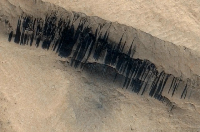 Анализ примерно 2,1 миллиона полос на склонах, которые сфотографировал аппарат Mars Reconnaissance Orbiter в период с 2006 по 2024 год, показал совершенно другую картину. Оказалось, что почти все новые полосы — результат сезонного ветра и пылевой эрозии. Полосы, которые похожи на «штрих-код», на горе Аполлинарис образовались в результате оползней, которые спровоцировало падение метеороида. Новое исследование показывает, что это исключительно редкий случай