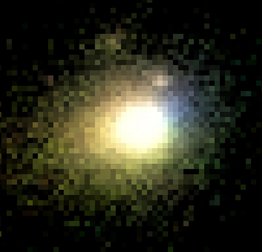 В увеличенном виде 3I/ATLAS стал выглядеть как маленький шарик с разноцветным ореолом.