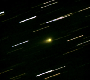 Самое последнее изображение 3I/ATLAS от 28 декабря 2025 года, полученное с выдержкой 40×120 секунд на 0,25-метровом телескопе с разрешением 1,38 угловой секунды на пиксель. Поле зрения составляет 22 на 20 угловых минут. Длинная струя антихвоста хорошо видна. (Автор изображения: Тони Скармато)