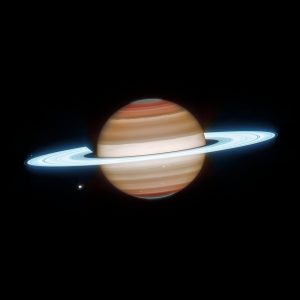 В инфракрасном диапазоне кольца Сатурна выглядят особенно яркими благодаря высокому содержанию отражающего водяного льда. Эти частицы эффективно рассеивают солнечный свет, создавая эффект «неонового свечения».